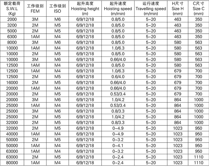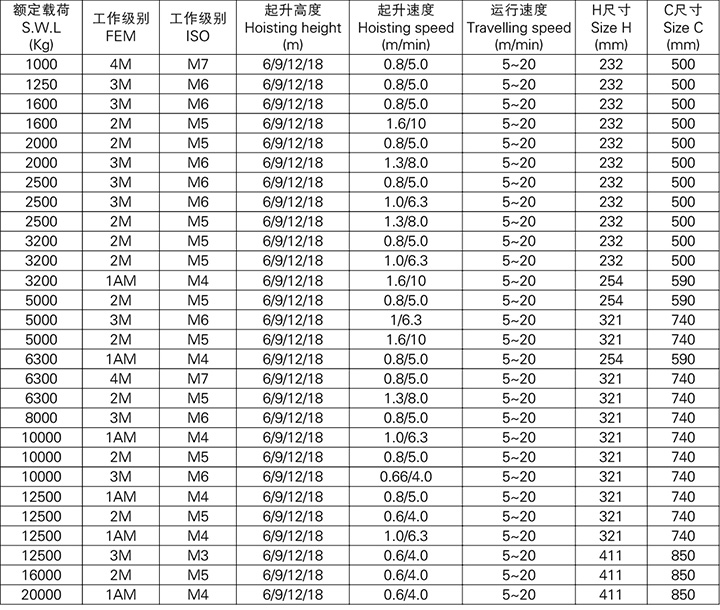 具有更快更多的起吊速度和多种滑轮倍率可供选择。标准小车运行机构采用变频器控制,速度达到20米/分,使小车行走时吊运物品摆动小、定位精确,可安全可靠地吊运精密贵重物品。