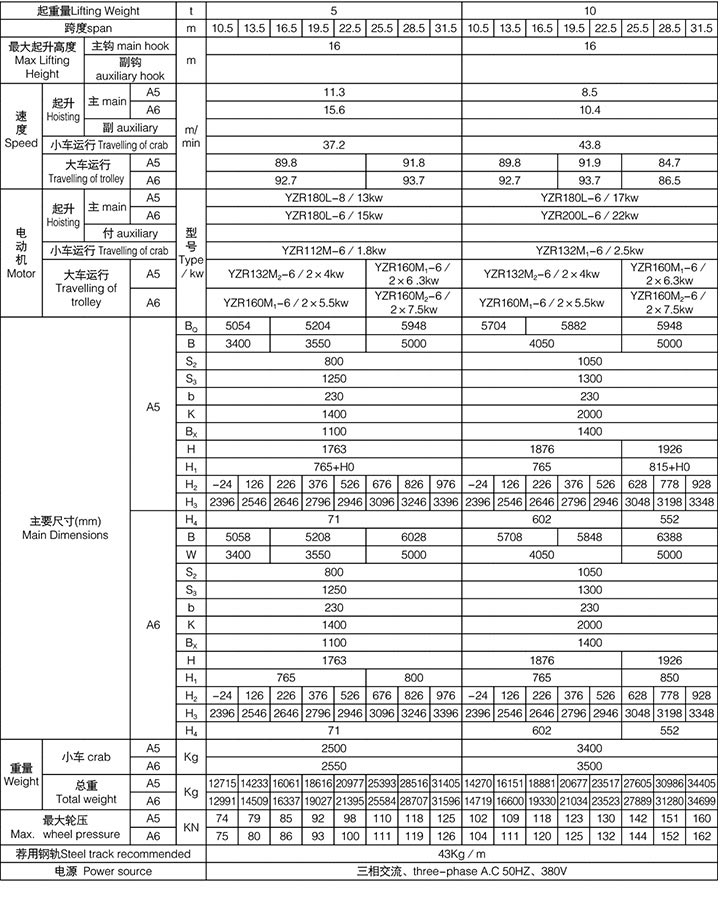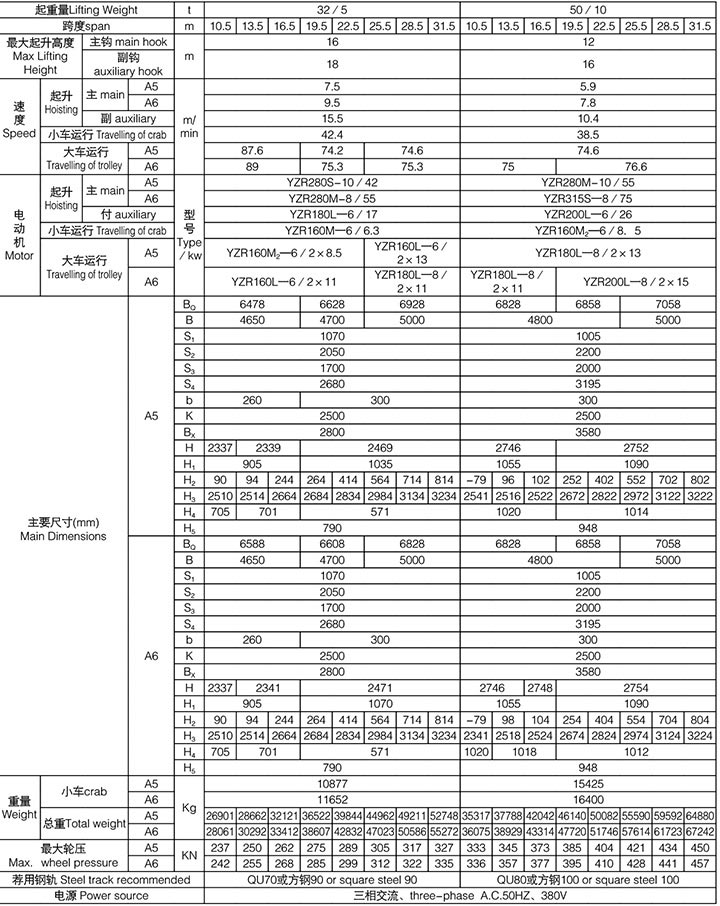 QD型75/20~100/20吨吊钩桥式起重机QD Type 75/20~100/20t Hook Bridge Crane 主钩分单钩、双钩两种