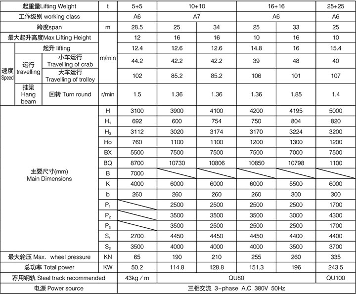 QD型125/32~250/50吨吊钩桥式